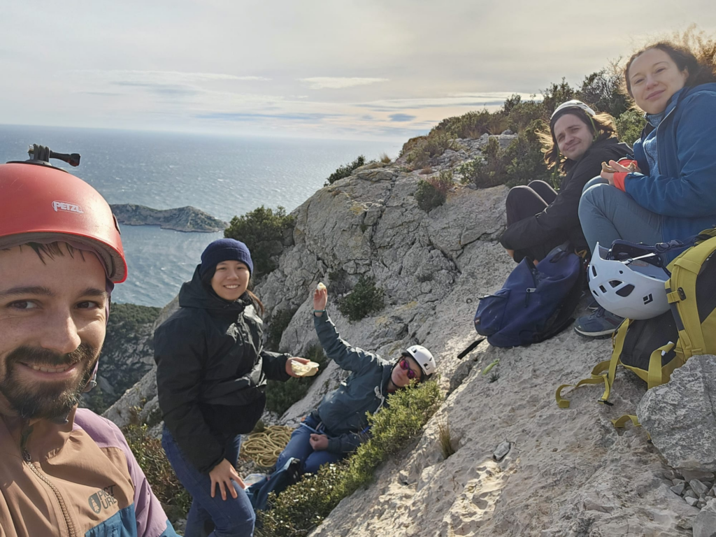 Nous devions être 6 pour ce week-end prolongé à Marseille, mais une annulation de dernière minute nous a laissés en nombre impair : 5 grimpeuses et grimpeurs prêts à troquer sans remord la Saint Valentin contre quelques grandes voies ! Nos conjointes et conjoints restés à la maison étaient sans doute moins enthousiastes, mais les absent·es ont toujours tort (et ne rédigent pas de compte-rendu).